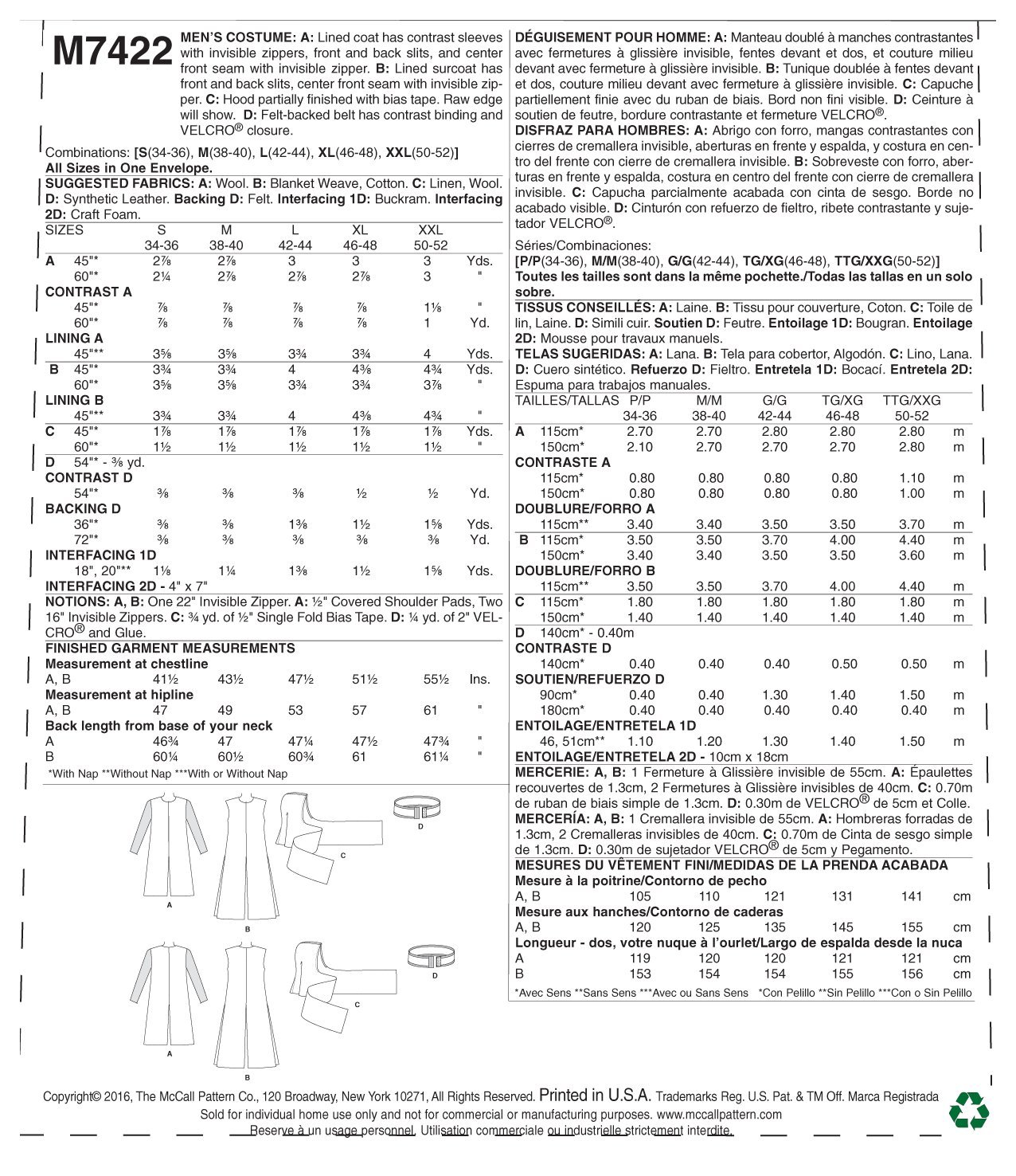 Mccall S M7422 Men S Evil Space Lord Costume Sewing Pattern Sizes S Xxl
