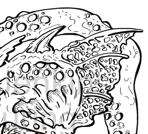 Halloween Demon Skull Coloring Page Horror Lineart Adult Etsy